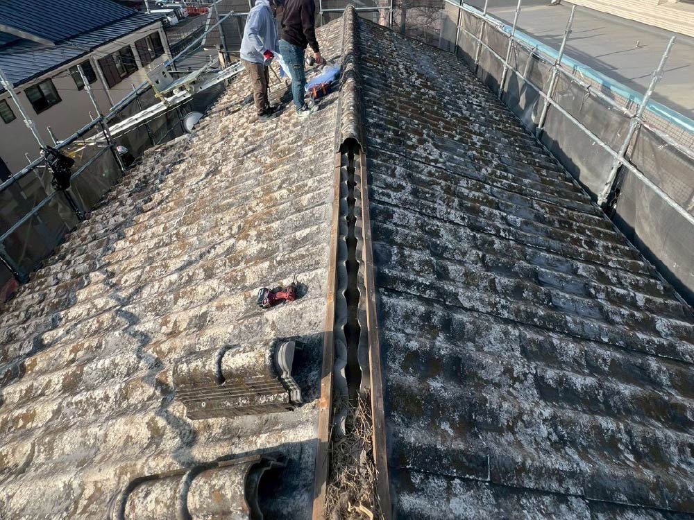 築40年を超え傷みが目立っていた瓦を下ろし、金属屋根で葺き替えました。