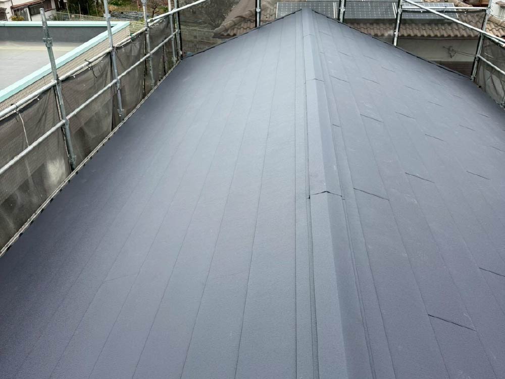 汚れや傷みの目立つスレート屋根をスーパーガルテクトで仕上げました。